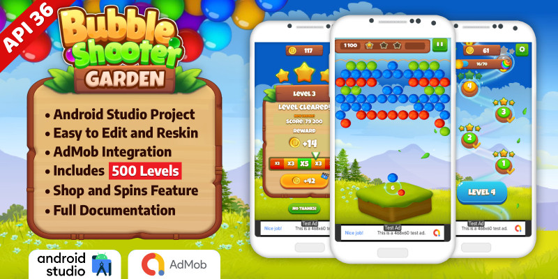Bubble Shooter Garden - Android Studio Template. Bubble Shooter Garden is a fun and relaxing bubble shooter game!