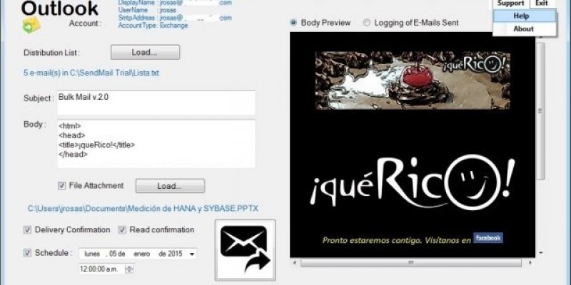 Bull Mail v.2.0. Can send bulk e-mails using Outlook