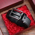 BULLCAPTAIN 130cm Ægte læder Mænds fashionable pin-spænde bæltet med boks som Valentines dag fødselsdagsgave til mand far