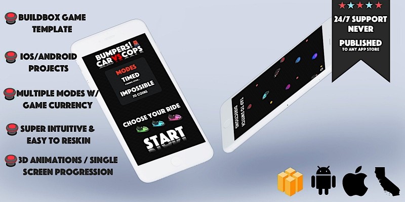 Bumpers - Car Vs Cops Buildbox Template. 3D Animations In Buildbox!