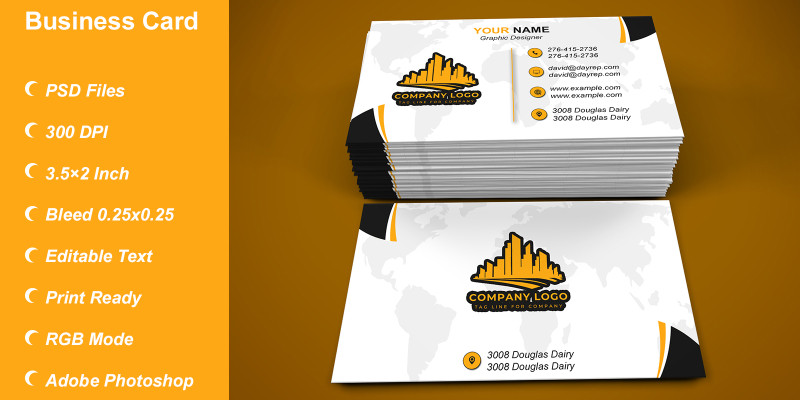 Business Card Template Design - Design 507. Professional visiting card templates, fully customizable in PSD format.Perfect for any industry. Stand out with modern design.