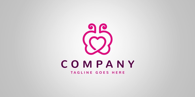 Butterfly Heart - Logo Template. animal, beauty, butterfly, cosmetic, fashion, fitness, heart, logo, love, makeup, nails, perfume, salon, spa, style, wellness