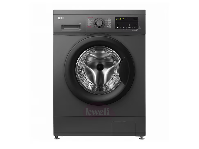 LG 8kg Front Load Washing Machine F4J3TYG6J (2023) 8kg Front Load Washing Machine 1400 Rpm Inverter Direct Drive Motor 6 Motion Technology Smart Diagnosis Steam Function 13 Wash Programs (3 Steam, 10 Non-Steam) Steam Programs (Steam Cotton, Allergy Care, Baby Steam Care) Non-Steam Programs (Cotton, Cotton Large, Mix, Easy Care, Sports Wear, Delicate, Wool, Intensive 60, Quick 30, Rinse & Spin) Additional Options (Medic Rinse, Pre-Wash, Time Delay, Intensive, Crease Care, Tub Clean) 6 Spin Options (Rinse Hold, No Spin, 400, 800, 1000, 1400) 6 Temperature Options (Cold, 20, 30, 40, 60, 95) Child Lock Emergency Drain Filter Silver Finish | #KweliGotYou| Order LG 8kg Front Load Washing Machine F4J3TYG6J; 1400rpm, Steam Option, 6 Motion Inverter Direct Drive online and enjoy free delivery across Uganda > Long warranty > Lifetime After-sales Support