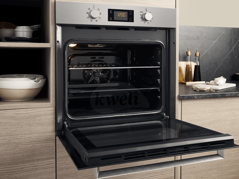 Ariston 60cm Built-in Multifunction Oven FA3 540 HIX Type: Electric Oven Oven Fan Temperature range; 60°-250° Integrated cleaning system: Hydrolytic Cavity material: Enamelled Usable volume (of the cavity) (l): 66 Home net: Not available Multilevel: Electronic Voltage (V): 220-240 Frequency (Hz): 50/60 Colour: Inox Electrical connection rating (W): 2900 Plug type: No Oven guides: Wall-embedded EAN code: 8050147001585 Energy efficiency class: A Cooking method: Multifunction Energy consumption conventional (kWh): 0.99 Energy consumption forced air convection (kWh): 0.79 8 programs including;- Grill, Pizza, Turbo Grill, and Bread. Dimesnions: Height (cm): 59.5, Width (cm): 59.5, Depth (cm): 55.1 | #KweliGotYou| Order Ariston 60cm Built-in Multifunction Oven FA3 540 HIX; 66-litres, Digital Display with Touch Controls, Oven Fan, 60°-250° online and enjoy free delivery across Uganda > Long warranty > Lifetime After-sales Support