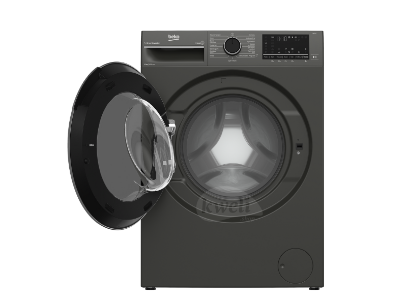 Description Beko 12kg Front Loading Washing Machine B3WFT51242MG This Beko 12kg washing machine is a lifesaver! It handles big loads, saves electricity with its A+++ rating, and even uses steam to remove stains and wrinkles. It’s quiet, fast, and perfect for making laundry day effortless!