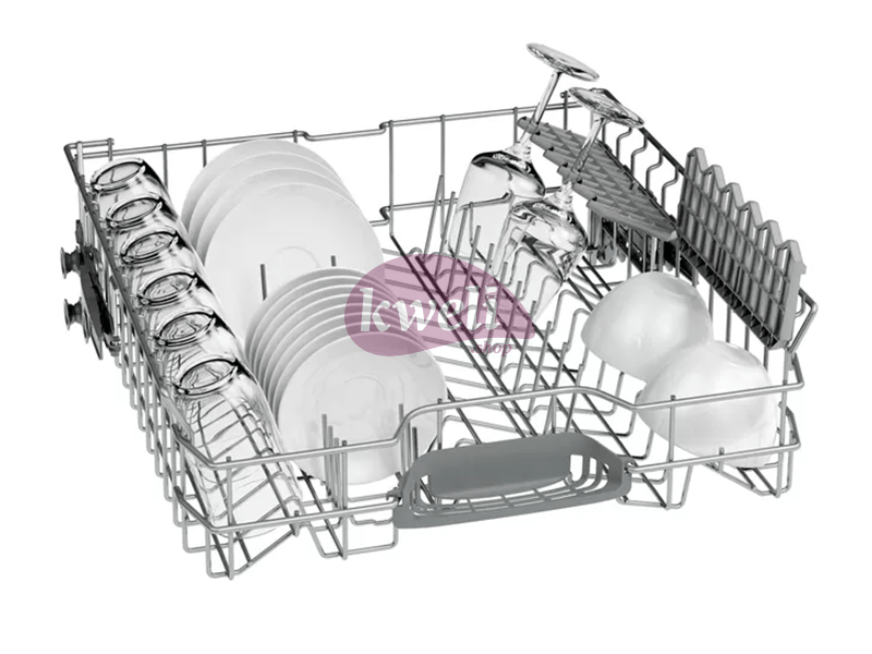 Description The Bosch Dishwasher SMS50D08GC features ActiveWater 60 with HygienePlus that rinses dishes at higher temperatures for the best cleaning performance. With multiple water protection system, this Bosch dishwasher offers optimum security against flooding. The child lock door prevents the door from opening when the rinse cycle is on. Bosch’s glass protection technology protects your delicate glasses while Aquastop protects from water damage. The dishwasher has 12 place settings, 5 programs, and 4 cleaning temperatures.