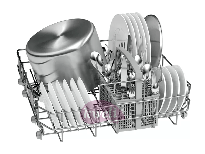 BOSCH Dishwasher Specifications Freestanding Dishwasher Wash Programs: 4-6 Place Settings: 12 Sanitization Option: No Noise: 42 dB Material: Stainless Steel Color: Inox/Silver Warranty: 1 year (free) 1 year warranty