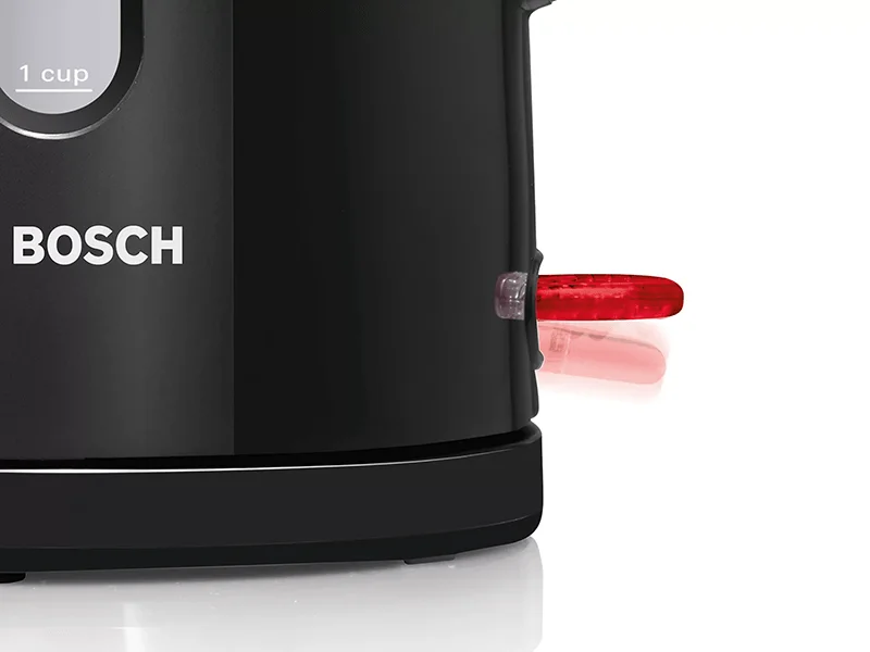 BOSCH Electric Kettle Specs: 1.7-liter capacity 1 cup (0.25l) min. fill Wattage: 2500-3000W Stainless steel interior base with a concealed heating element Removable limescale filter Cordless, 360º rotary base large water window: good visibility for right and left-handed persons Easy filling through spout - no need to open the lid Large opening for easy cleaning Safety locking lid Lighted on-off switch Automatic switch-off: kettle automatically switches off when the water has boiled Lift switch off: the kettle automatically switches off when removed from its base Boil-dry and overheat protection Non-slip feet on the base Easy storage: Cord keeper for simple and quick storage of the cable | #KweliGotYou| Order Bosch Electric Kettle, 1.7-liter, 2500-3000 watts, Black - TWK3A033GB online and enjoy free delivery across Uganda > Long warranty > Lifetime After-sales Support