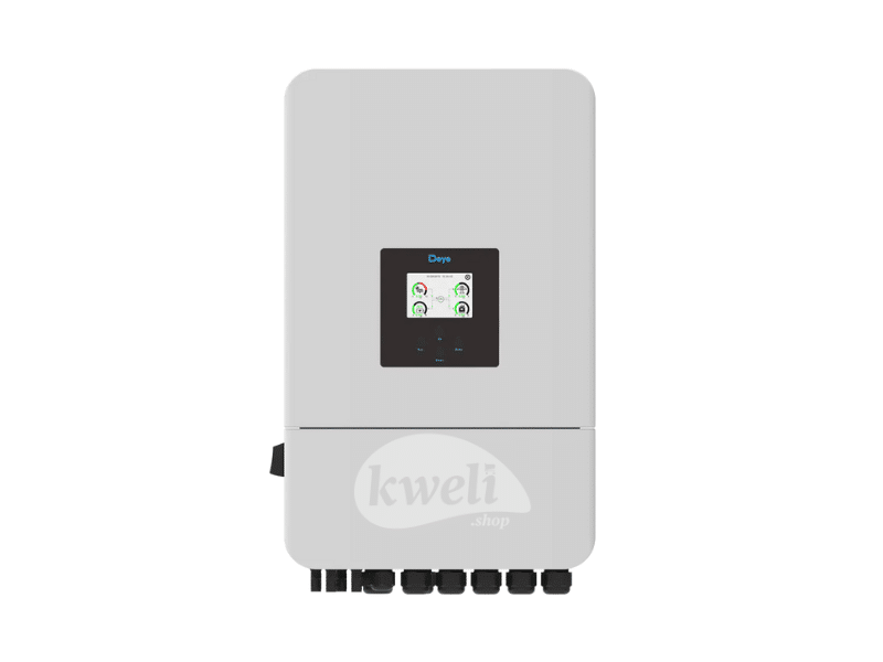 Deye 10kVA/10kW 48V Single Phase Hybrid Inverter Strong PV Handling: Supports up to 20kWp PV access / 16kWp PV input with dual MPPT trackers. High Current Capability: 210A charging/discharging current, designed for lithium battery banks. Pure Sine Wave Output: Stable 230Vac power for sensitive electronics and essential appliances. Flexible Hybrid Operation: Compatible with solar, grid, or diesel generator input with automatic switchover. Scalable Design: Supports parallel connection of up to 16 units for larger on-grid or off-grid projects. Smart Battery Management: Up to 6 programmable charging/discharging periods to optimise storage and usage. Comprehensive Protection: Built-in surge, reverse polarity, short-circuit, thermal, insulation monitoring, residual current, and anti-islanding. Remote Monitoring: WiFi/4G/GPRS/LAN support with colourful touch LCD control panel. High Efficiency: Transformerless design with >97.6% maximum efficiency and >99% MPPT efficiency. Durable Outdoor Build: IP65-rated enclosure, lightweight 26.8kg design, and low noise (<30 dB).