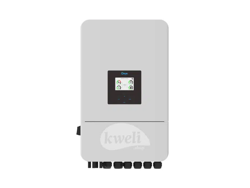 Description Deye 10kVA/10kW 48V Single Phase Hybrid Inverter Model: SUN-10K-SG05LP1-EU-SM2 General Specifications Rated Output Power: 10 kVA / 10 kW Battery Voltage: 48V (Lead-acid or Lithium-ion) Battery Voltage Range: 40–60 VDC Max. Charging Current: 210A Max. Discharging Current: 210A Number of Battery Inputs: 1 Topology: Transformerless (Non-isolated) Output Waveform: Pure sine wave PV Input Data Max. PV Access Power: 20,000 W Max. PV Input Power: 16,000 W Max. PV Input Voltage: 500 VDC Start-up Voltage: 125 V MPPT Voltage Range: 150–425 VDC Rated PV Input Voltage: 370 VDC No. of MPPT Trackers / Strings: 2 / (2+2) Max. Operating PV Input Current: 26 A + 26 A Max. Short-Circuit Current: 34 A + 34 A AC Input / Output Data Rated AC Power (On-grid/Off-grid): 10,000 W Max. AC Power: 11,000 W Rated AC Current (Output): 45.5 A / 43.5 A Max. AC Current (Output): 50 A / 47.9 A Max. Continuous AC Passthrough (grid → load): 50 A Peak Power (Off-grid): 2 × rated power (10s) Power Factor Adjustment: 0.8 leading to 0.8 lagging Rated Voltage: 220/230 V AC (±15%) Rated Frequency: 50 Hz / 60 Hz (±5 Hz) Grid Connection Form: L + N + PE THDi: <3% DC Injection Current: <0.5% Efficiency Max. Efficiency: 97.6% Euro Efficiency: 96.5% MPPT Efficiency: >99% Features & Protection Display: Colorful touch LCD IP Rating: IP65 (indoor/outdoor use) Monitoring: GPRS / WiFi / Bluetooth / 4G / LAN (optional) Integrated Protection: DC reverse polarity, AC overcurrent & overvoltage, thermal, DC/AC short-circuit, anti-islanding, insulation impedance detection, residual current detection Surge Protection: Type II (DC), Type III (AC) Parallel Operation: Up to 16 units (on-grid or off-grid) Battery Management: 6 programmable time periods for charging/discharging Generator Support: Compatible with diesel generator input Design & Usability Cooling: Intelligent air cooling Noise: <30 dB Ingress Protection: IP65 Cabinet Size (W×H×D): 366 × 589.5 × 237 mm (excluding connectors & brackets) Weight: 26.8 kg Operating Temperature: –40°C to +60°C (derating above 45°C) Altitude: ≤2000 m Warranty: 5 Years / 10 Years (site-dependent)