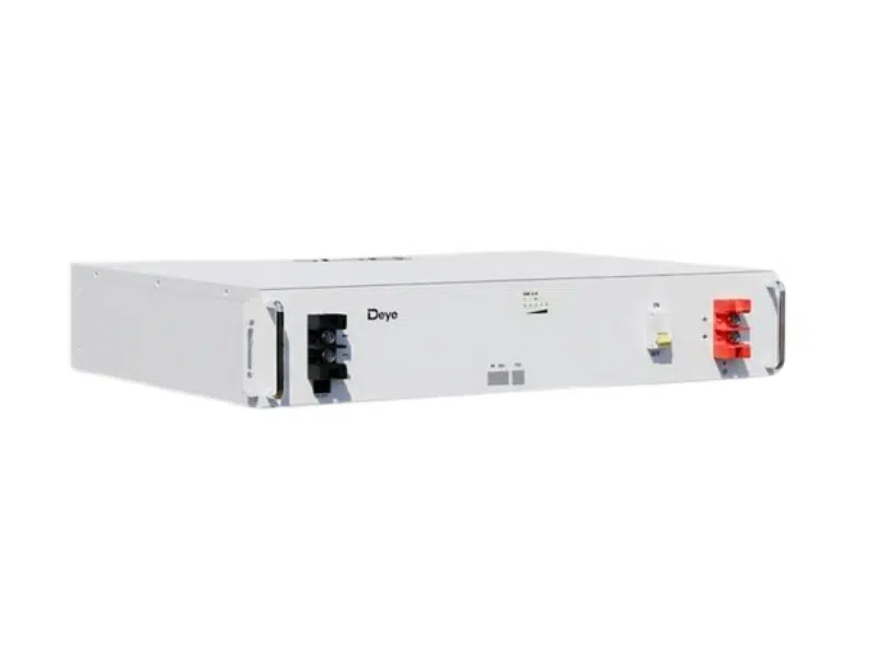 Description Deye SE-G5.1 5.12kWh 51.2V LiFePO₄ Lithium Solar Battery datasheet Electrical Specifications Battery Chemistry: LiFePO₄ Nominal Voltage: 51.2V Operating Voltage Range: 44.8V – 57.6V Capacity: 100Ah Nominal Energy: 5.12kWh Recommended Depth of Discharge: 80% Max Continuous Charge Current: 50A Max Continuous Discharge Current: 50A Peak Current: 100A (10 seconds) Cycle Life: ≥6000 cycles Scalability & System Integration Maximum Parallel Units: 64 Maximum Total Capacity: 327.68kWh Communication Ports: CAN2.0, RS485 Compatible with Deye hybrid inverters Modular expansion design Installation & Environmental Specifications Installation Type: Wall-mounted / Floor-mounted (stacked) / Rack-mounted Ingress Protection Rating: IP20 Operating Temperature: Charge: 0°C to 55°C Discharge: -20°C to 55°C Storage Temperature: 0°C – 35°C Relative Humidity: ≤95% Permissible Altitude: ≤2000m Weight: 44kg Dimensions (W × H × D): 440 × 540 × 133 mm Warranty & Certification Warranty Period: 5 Years Certifications: UN38.3, MSDS Deye SE-G5.1 5.12kWh 51.2V LiFePO₄ Lithium Solar Battery highlights 5.12kWh LiFePO₄ lithium energy storage module. 51.2V low-voltage system (48V class). 100Ah battery capacity. Built-in intelligent BMS for protection and balancing. 50A continuous charge and discharge capability. 100A peak discharge (10 seconds). Scalable up to 64 units (327.68kWh total capacity). CAN2.0 and RS485 communication support. ≥6000 cycle life at 80% depth of discharge. Suitable for residential and commercial ESS installations.
