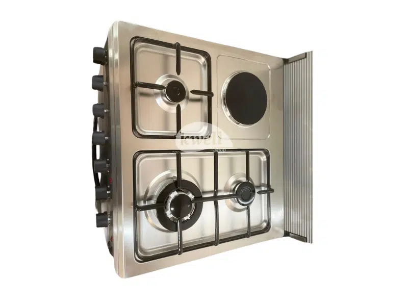 DR VOLT 60cm Gas & Electric Cooker IQ-FC6611SS 60cm freestanding stainless steel cooker — compact and durable 3 Sabaf gas burners (Ø130 + Ø100 + Ø70) with aluminium base and enameled caps 1 Electric hot plate (1.0kW) for added versatility Pulse ignition system for convenient lighting Enameled pan support for stability and easy cleaning 64-litre oven with thermostat, lamp, and rotisserie for professional results Dual oven heaters: Upper 900W + Lower 1200W Tempered glass cover and double-glazed oven door for safety and efficiency Heat-resistant knobs and painted black steel door handle Includes one baking pan and one electroplated rack Ideal for modern homes, apartments, and compact kitchens