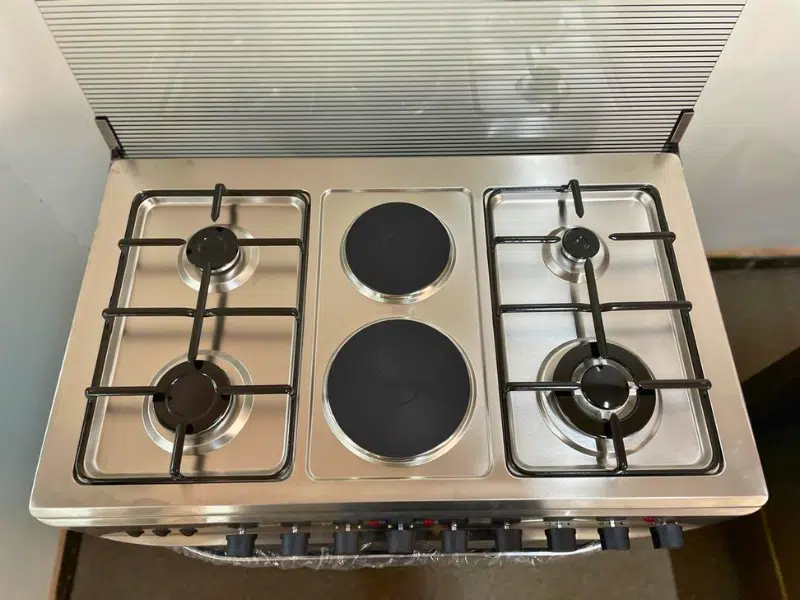 Buy new DR VOLT 90cm Gas & Electric Cooker IQ-FC9942SS; 4 Gas + 2 Hot Plates, Pulse Ignition, Enamelled Pan Support, 90L Oven with Lamp, Rotisserie & Timer Function in Uganda - - Free Delivery > Long