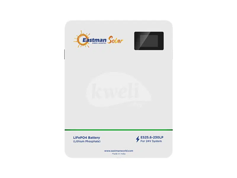 Buy new Eastman 200AH 24V 5.12kWh Lithium Solar Battery ES25.6-230LP; Built-in BMS, Over 6,000 Charge Cycles @25°C, 80% DoD, Real-time LCD Monitoring, Wall Mount in Uganda - - Free Delivery > Long war