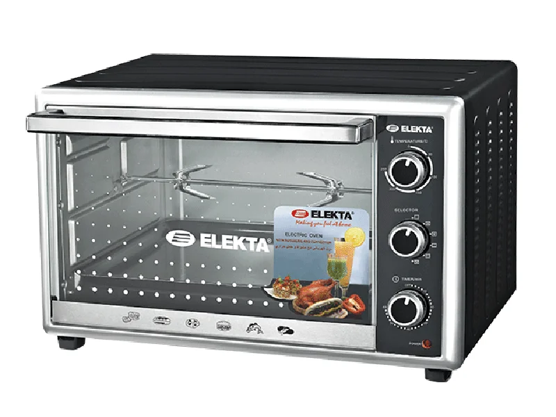 Description Prepare your favourite dishes with 34L Elekta Oven with Rotisserie function you can even Roast Chicken, Lamb, for baking Cakes, Pizza with this Easy-To-Use Electric Oven. It has Adjustable Temperature up to 2500C. Cook to perfection with the 60 Minutes Timer. With 6 Heating Selection modes gives you versatility for various recipes Toast/Bake/Broil/Grill/Rotisserie With Rotisserie Function With Glass Silk Printed Door Holders, Round Knob Detachable elements for Easy Cleaning