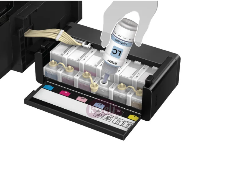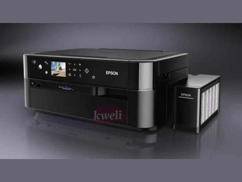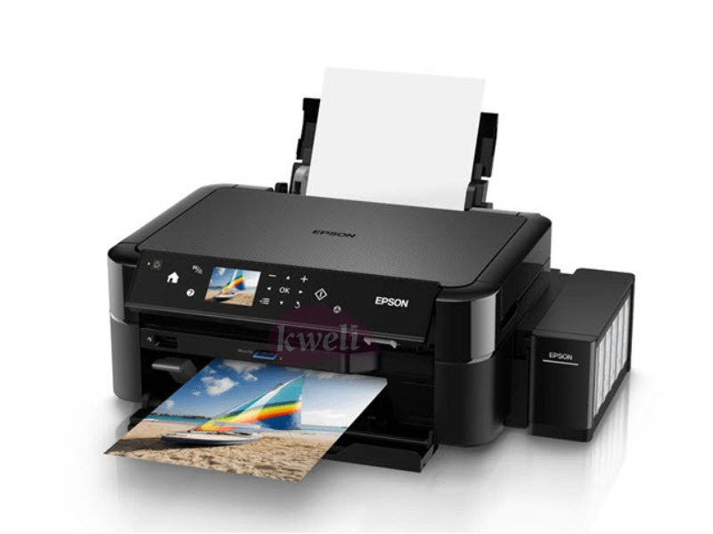 Epson EcoTank Multifunction Photo Printer L850 Multi-functional Borderless Photo Printing with savings you can enjoy Imaging enthusiasts and professionals can look forward to the 6-colour ink tank system, presenting vibrant borderless prints and unrivalled performance at a remarkably low cost through this 3-in-1 photo printer. Print, Copy, Scan High-yield ink bottles 2.7 colour LCD screen Direct printing via memory card slot, USB port and PictBridge CD/DVD printing Superb Savings and Page Yield Additional Features for Convenient Usage Direct Printing onto CDs/DVDs Superior Print Speed for Better Productivity Unsurpassed Print Quality Enjoy Peace of Mind with Epson Warranty Quality That Shines. Value That Lasts Print Method: On-demand inkjet (Piezoelectric) Maximum Print Resolution: 5760 x 1440 dpi (with Variable-Sized Droplet Technology) Minimum Ink Droplet Volume: 1.5 pl Control Panel: 2.7” TFT Colour LCD Print Direction: Bi-directional printing, Uni-directional printing Nozzle Configuration:90 nozzles, each colour (Cyan, Light Cyan, Magenta, Light Magenta, Yellow, Black) Power consumption: Operating: 12 watts, Sleep: 1.6 watts, Power Off: 0.35watts Standby: 5.3 watts | #KweliGotYou| Order Epson EcoTank Multifunction Photo Printer L850; Photo Printing, CD/DVD Printing, A4 Print, Scan & Copy, 12/5.3watts online and enjoy free delivery across Uganda > Long warranty > Lifetime After-sales Support