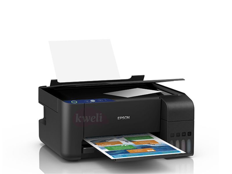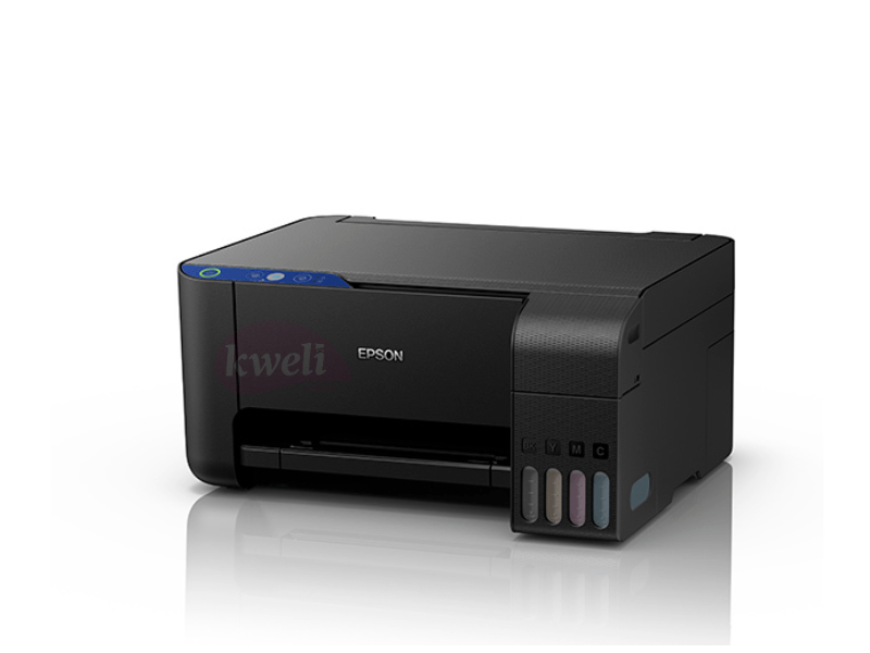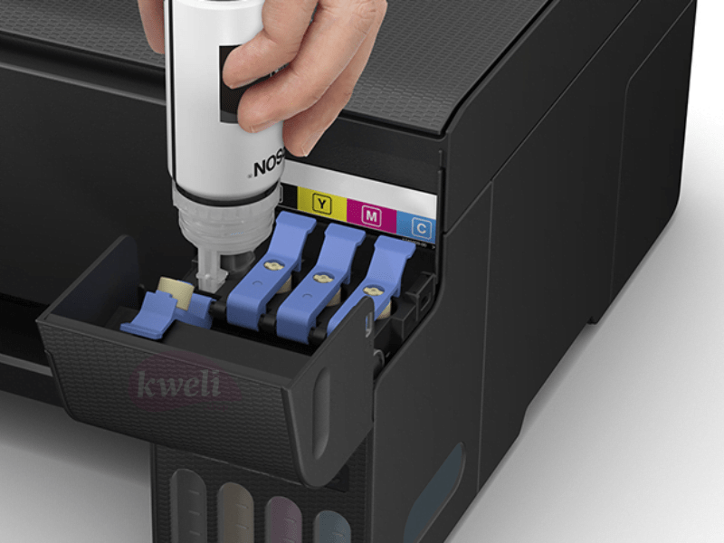Epson Ecotank Printer L3110 Multifunctional 3:1 - print, copy, scan Prints up to 7.500 color pages or 4.500 pages in black New tank design integrated into the printer to reduce space Peace of mind with 100% cartridge-free printing Flexible paper management - Print 100 pages without interruptions. Scan with great quality - Scanner with 48-bits x 600 x 1200 dpi. Print quickly - Up to 33 ppm black and 15 ppm color. Print borderless photos - 3,5" x 5" (9 x 13 cm) / 4" x 6" (10 x 15 cm). Ultra-low printing costs - Save up to 90% on ink with replacement bottles vs. cartridges³. Thousands of prints without interruptions¹ - One set of replacement bottles equals 35 sets of ink cartridges². Bottles with EcoFitTM system - Bottles with ultra-high capacity and great quality. Peace of mind with 100% cartridge-free printing - More savings, better value. More compact design - New tank design integrated into the printer to reduce space. Front-facing tanks - For easy monitoring of inks. New easy filling system - Bottles with automatic filling, keyed for easy and clean filling of each colour. Printing Technology: MicroPiezo® 4-colour inkjet technology (CMYK) Maximum Print Resolution: Up to 5760 x 1440 dpi optimized resolution on various paper types ISO Print Speed: Black 10.5 ISO ppm and colour 5 ISO ppm Print Speed: Black 33 ppm and colour 15 ppm Minimum Ink Droplet Size: 3 picoliters Power consumption: 12 watts (Active), 3.9 watts (standby) | #KweliGotYou| Order Epson Ecotank Printer L3110; All-in-One Printer + Scan and Copy, 12/3.9watts online and enjoy free delivery across Uganda > Long warranty > Lifetime After-sales Support