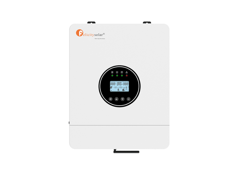 Description Felicity 6kVA/6kW 48V Hybrid Inverter IVEM6048-II features 6kVA/6kW hybrid inverter with integrated MPPT charge controller Supports up to 7.5kWp PV input at up to 500Voc Pure sine wave output suitable for sensitive electronics Battery-independent startup and operation supported LCD display with flexible configuration: charging priority, voltage ranges, etc. Built-in WiFi receiver for mobile/online monitoring Parallelable up to 12 units for larger systems Generator input can function as a smart AC output Full system protection: overvoltage, short circuit, overload, overtemperature