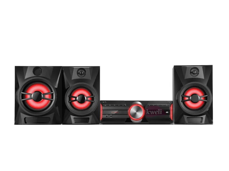 Hisense 2.1 Mini Hifi Sound System HA650 2.1 Channel Stereo Speakers Preset Equalizer CD Front Loader USB Playback FM Radio Speaker Flashing LED Bluetooth Connectivity 3.5mm LINE Input LED Display Screen Total Power Output 800W 8” Subwoofer 6.5” Woofer *2 | Tweeter *2 Remote Control 3 years warranty | #KweliGotYou| Order Hisense 2.1 Mini Hifi Sound System HA650 online and enjoy free delivery across Uganda > Long warranty > Lifetime After-sales Support