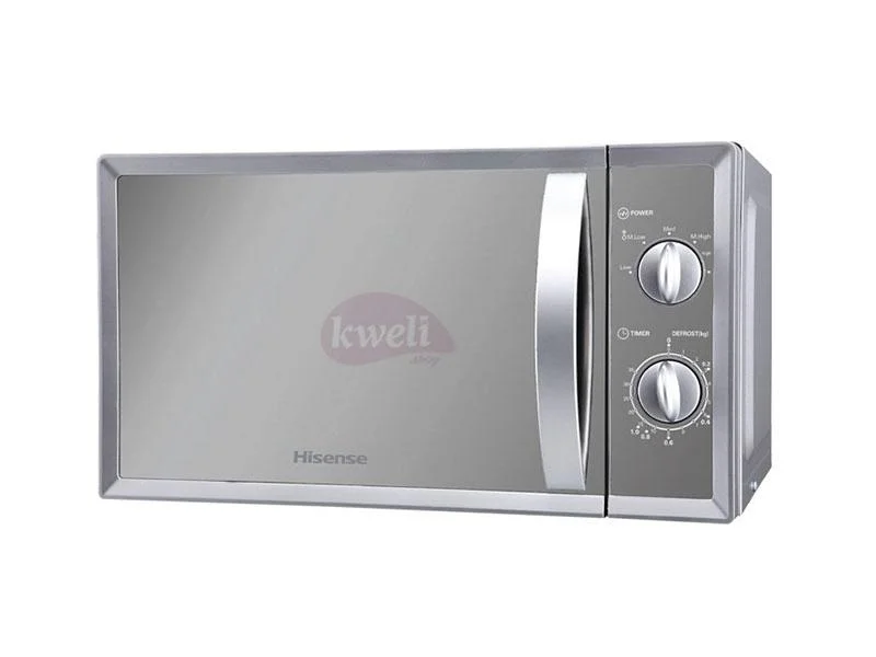 Description Hisense 20-litre Microwave H20MOMMI 700 watts microwave power Defrost 35 minutes timer Mirror Glass finish, 5 power levels setting, Durable door design Mechanical control