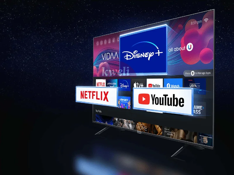 Hisense 55 inch 4K UHD Smart TV - A7 Series Diagonal width: 55 inch Precision Colour, Dolby Vision, Dolby Vision Atmos, Wide Colour Gamut, 4K Resolution, Active High Dynamic Range - HDR VIDAA U Smart OS Remote Now app Netflix one-tap Youtube one-tap Bluetooth HDMI x3 USB x2 Ethernet WiFi Built-in Free-to-air Receiver 3-year Hisense warranty | #KweliGotYou| Order Hisense 55 inch 4K UHD Smart TV 55A7HS - A7 Series VIDAA-U Smart TV, Bluetooth, Any View Cast - (Frameless) online and enjoy free delivery across Uganda > Long warranty > Lifetime After-sales Support