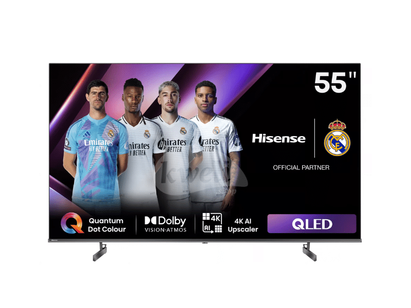Description Hisense 55-inch QLED 4K UHD Smart TV 55Q6N Transform your viewing experience with the Hisense 55″ QLED 4K UHD Smart TV 55Q6N! Featuring VIDAA OS, Quantum Dot Colour, 120Hz Refresh Rate with Game Mode PLUS, Dolby Vision & Atmos, and a frameless design, it’s perfect for gaming, streaming, and cinematic brilliance! Hisense 55-inch QLED 4K UHD Smart TV 55Q6N Screen Size: 55 inches Resolution: 4K Ultra HD (3840 x 2160 pixels) Colour Technology: Quantum Dot Colour Upscaling: 4K AI Upscaler High Dynamic Range (HDR): Dolby Vision Audio Technology: Dolby Atmos Gaming Features: Game Mode PLUS Operating System: VIDAA Smart TV Voice Control: Yes Refresh Rate: 120Hz Design: Frameless Connectivity: HDMI ports, USB ports, Wi-Fi, Ethernet Additional Features: Access to streaming apps, customizable interface