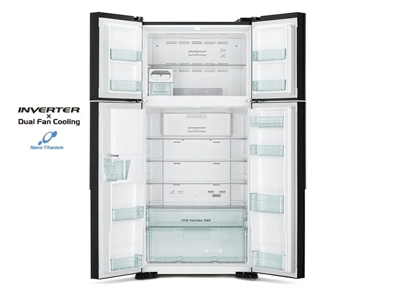 Description Inverter Technology Compressor: Depending on the conditions inside the refrigerator and the outdoor environment, the Inverter compressor adjusts the cooling intensity to the appropriate level for optimal cooling at all times. INVERTER X Dual Fan Cooling The Hitachi Solution for Powerful Refrigeration Plus Exceptional Energy Saving. Fresh Select The Select Lever lets you adjust the inside temperature by switching between the two modes.