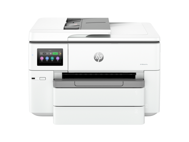 Description HP OfficeJet Pro 9730 Wide Format All-in-One Printer Specifications and Features Technical Specifications Printer Type : Wide Format All-in-One (Print, Scan, Copy) Print Technology : Thermal Inkjet Print Speed : Up to 25 pages per minute (ppm) for both color and black (ISO standard) Print Resolution : Up to 4800 x 1200 optimized dpi Processor Speed : 1.2 GHz Memory : 512 MB Display : 4.3-inch Color LCD Touchscreen Paper Handling : Input Capacity : 250-sheet input tray, additional 250-sheet plain paper tray Output Capacity : 75-sheet output tray Automatic Document Feeder (ADF) : 35-sheet capacity Media Sizes Supported : A3, A4, A5, A6, B5 (JIS), Envelopes (DL, C5, C6), and Card (Hagaki) Custom Media Sizes : Tray 1: 76 x 127 to 297 x 420 mm Tray 2: 210 x 297 to 297 x 420 mm Borderless Printing : Yes, up to A3/11 x 17 inches Features Connectivity : Wi-Fi/Wireless : Built-in dual-band Wi-Fi (802.11 a/b/g/n/ac) with a self-heal solution Network Capabilities : Built-in Ethernet (10/100 Base-TX) USB Ports : 1 Hi-Speed USB 2.0 (host), 1 Hi-Speed USB 2.0 (device) Mobile Printing Capability : Compatible with Apple AirPrint, Mopria, HP Smart App, Wi-Fi Direct Printing Scan Capabilities : Scanner Type : Flatbed and ADF Scan Resolution : Up to 1200 dpi (optical) Scan Size : ADF: Up to 216 x 356 mm, Flatbed: Up to 297 x 432 mm Scan File Format Support : PDF, TIFF, JPEG, PNG, BMP, RTF, TXT, Searchable PDF Copy Features : Copy Speed : Up to 18 copies per minute (black) and 13 copies per minute (color) Reduce/Enlarge Settings : 25 to 400% Copy Resolution : Up to 600 dpi for text and graphics Power and Operating Requirements : Input Voltage : 100 to 240 VAC, 50/60 Hz Power Consumption : 5.4W (Standby), 1.39W (Sleep), 0.11W (Manual-Off) Operating Temperature : 5 to 40°C (41 to 104°F) Operating Humidity : 20 to 80% RH Environmental Certifications : EPEAT Registered, Blue Angel Compliant Key Benefits Versatility : Wide format printing capability supporting A3 documents, perfect for marketing materials and posters. Productivity : Equipped with an automatic duplexer and ADF for efficient two-sided printing, copying, and scanning. Ease of Use : Intuitive 4.3-inch touchscreen display for easy navigation and control of printer functions. Connectivity Options : Multiple wireless and wired options to facilitate easy printing from different devices, including mobile. High-Quality Prints : Up to 4800 x 1200 dpi resolution, providing sharp and vibrant prints suitable for both office and creative use.
