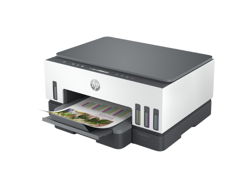 HP Smart Tank 720 All-in-One Printer Effortlessly print, scan, and copy with the HP Smart Tank 720. Ideal for high-volume, cost-effective printing, this all-in-one printer is designed for both home and small office use, ensuring top-quality prints with easy, refillable ink tanks. Technical Specifications Print Technology: Thermal Inkjet Functions: Print, Scan, Copy Print Speed: Up to 15 ppm (black) / 9 ppm (color) Connectivity: Dual-Band Wi-Fi, USB, Bluetooth LE Ink System: Refillable Ink Tank System Features High-Volume Printing: Up to 6,000 pages (black) or 8,000 pages (color) per refill. Smart Features: HP Smart App for mobile setup, print from anywhere, and status monitoring. User-Friendly Refilling: Spill-free, resealable bottles for easy ink management. Design Compact Build: Fits seamlessly into home or office setups with a sleek, modern design. Integrated Display: Simple controls on an intuitive, built-in display panel. Connectivity Multiple Device Support: Print wirelessly from your smartphone, tablet, or PC. Wi-Fi Direct Printing: Connect directly to your printer without a network for faster setup. Highlights Eco-Friendly Printing: Energy Star certified, with reduced environmental impact. Value for Money: Save up to 90% on printing costs with HP’s Smart Tank refillable system.