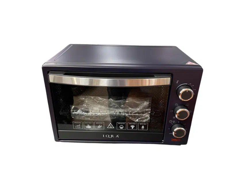 Description Iqra 19L Premium Electric Oven IQ-EO22 Small but mighty! Bake, grill, and roast with ease using the 19L Iqra Electric Oven. With 1280W power, rotisserie, and a 60-minute timer, it’s perfect for quick family meals.