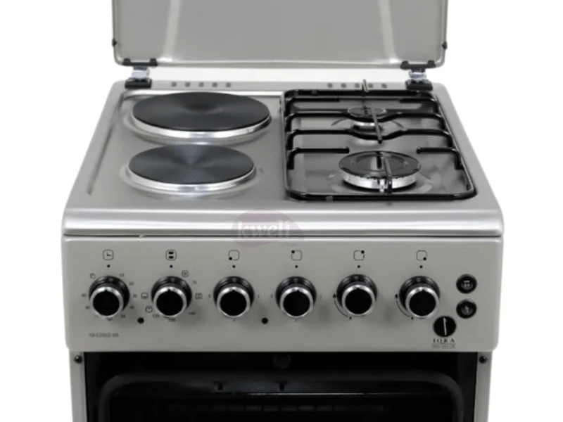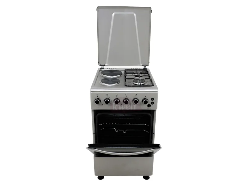 Buy new IQRA 50x60cm Cooker IQ-C2022-SS; 2 Gas Burners + 2 Electric Plates with Electric Oven and Grill; Oven Timer in Uganda - - Free Delivery > Long warranty > Lifetime After-sales Support