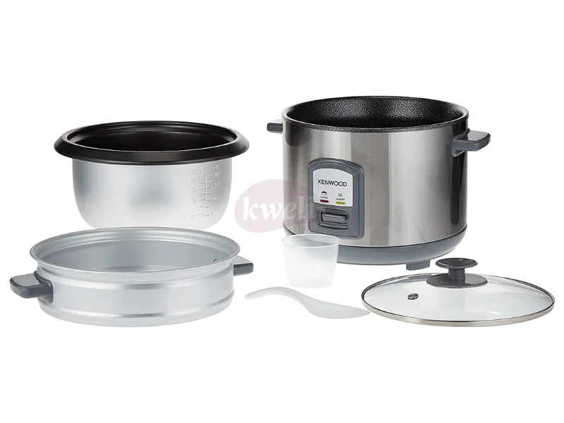 Description Kenwood 1.8L Rice Cooker RCM45: Stainless Steel Style with Versatile Cooking The Kenwood Rice Cooker RCM45 combines a sleek stainless steel design with practical functionality, making it an essential kitchen appliance for efficient cooking. Key Features: Capacity: 1.8 litres, perfect for preparing rice for family meals or gatherings. Material: High-quality stainless steel construction for durability and easy maintenance. Keep-Warm Function: Automatically keeps rice warm after cooking, ready to serve at any time. Steaming Function: Includes a steaming tray for cooking vegetables, fish, and more, adding versatility to your meal preparation. Non-Stick Inner Pot: Removable and non-stick for effortless cleaning and to prevent rice from sticking. User-Friendly Controls: Simple one-touch operation for straightforward cooking. Compact Design: Stylish and space-efficient, fitting seamlessly into any kitchen décor. Specifications: Model Number: RCM45 Capacity: 1.8 litres Material: Stainless steel Functions: Rice cooking, steaming The Kenwood Rice Cooker RCM45 delivers both style and functionality, making it an excellent choice for preparing delicious rice and steamed dishes with ease.