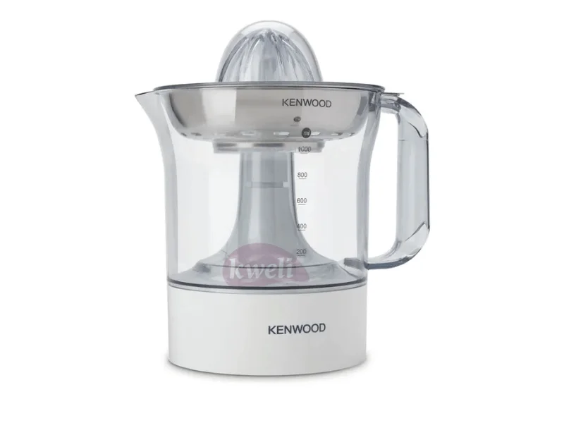 Kenwood Electric Citrus Juicer . 40 watts power . 1 liter capacity . Stainless steel top · Dish machine washable detachable apparatus · Drainer nozzle transparent jug · Durable cleaning dust cover · Maximum fruit juice with bi-directional rotation · Filter is suitable for all fruits · Cable storage the