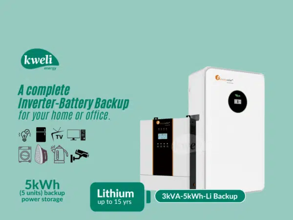 Kweli-Su-Kam 5kWh1600VA24-GEL Power Backup System: Keep your home bright and connected effortlessly! Power up to 25 bulbs, TV, fan, DC iron, fridge, phone, and laptop for up to 24 hours during power outages. This efficient system charges via the grid (Umeme) and ensures your essential appliances run smoothly. Reliable, efficient, and perfect for your home needs. The system features; A 5kWh Gel Battery bank 1600VA 24V Pure Sine Wave Inverter. Charge with Umeme/grid Low battery protection Overload protection The built-in changeover automatically switches to the backup when the power goes off 2-year system warranty This power backup system can power the following; TV Fridge up to 25 lights Phone charging Laptop charging Music DC Flat iron Fan CCTV This package/offer includes: Battery Inverter Cable | #KweliGotYou| Order Kweli-Su-Kam 5kWh1600VA24-GEL Power Backup System; Run up to 25 Bulbs, TV, Fan, DC Iron, Fridge, Charging for up to 24 Hours online and enjoy free delivery across Uganda > Long warranty > Lifetime After-sales Support