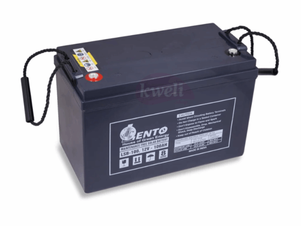 Lento 12AH 12V Sealed Maintenance Free Battery - VRLA BATTERY Lento Sealed Maintenance-free Batteries are the perfect solution when you want batteries that last for a long time and perform consistently throughout their life. Amp Hours: 12AH Voltage (DC): 12V Positive plate with cyclic grid alloy for higher cycle life. Radial grids for low internal resistance, quick recharge and high discharge performance. AGM Separator for Greater compression and longer life. Copper alloy screw-type terminals for better electrical conductivity, absolute positive contact, and zero wear & tear. Wide operating temperature range (-20°C to +50°C). Excellent deep discharge capability and ability to withstand frequent and long power failures. Low self-discharge for longer shelf life. High-impact PP/ABS container for better strength | #KweliGotYou| Order Lento 12AH 12V 144Wh Sealed Maintenance Free VLRA Battery, Made in India online and enjoy free delivery across Uganda > Long warranty > Lifetime After-sales Support
