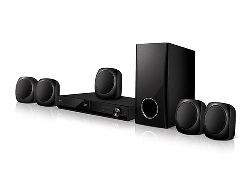 LG Home Theater 300 Watts Output Powerful Bass Sound Wireless Bluetooth Audio Streaming DVD, Mp3, USB Flash, FM Radio Aux in, Portable in 5.1 Channel Real Surround Sound Wireless Bluetooth Audio Streaming 2-year warranty