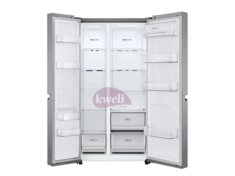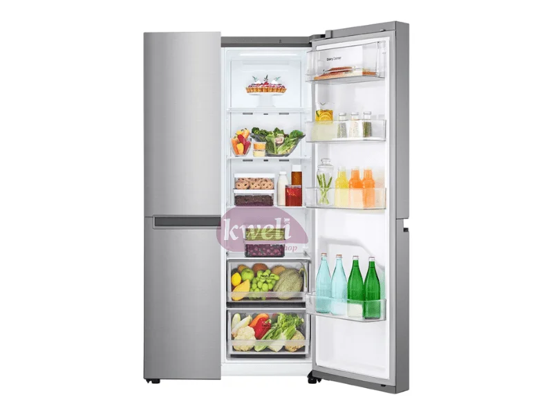 LG 649-Litre Refrigerator GC-B257JLYL - Shiny Steel Side-by-Side Refrigerator Total no frost Capacity: 649 litres, Freezer - 233 litres, Fridge - 416 litres Smart Inverter Compressor takes energy efficiency to the next level to help you save more and 10 years of peace of mind. Multi Air Flow; Air flows in every direction to keep your food fresh, no matter where you place it. The LG ThinQ™ app allows you to easily connect with your refrigerator in a way you never could before. Turn on 'Express Freeze' with just the tap of a button. LinearCooling™; reduces temperature fluctuations, locking in the flavor of fresh for up to 7 days. Large Capacity | #KweliGotYou| Order LG 649-Litre Refrigerator GC-B257JLYL; Side By Side Refrigerator, Multi Air Flow, Smart Diagnosis™, Total No Frost online and enjoy free delivery across Uganda > Long warranty > Lifetime After-sales Support