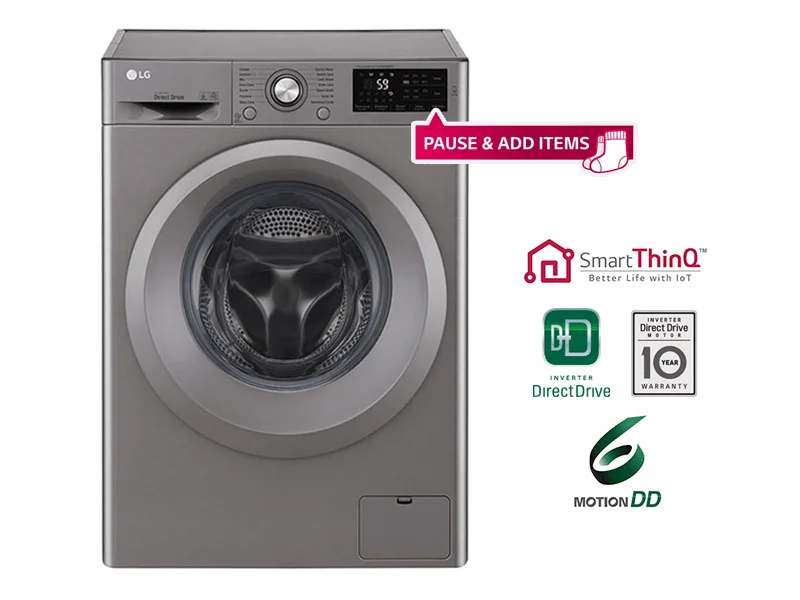 LG 6kg washing Machine 6kg wash load 6 Motion direct-drive motor Front Loading Pause and Add forgotten items Auto-restart after a power cut Smart Diagnosis with SmartThinq 1000 RPM rotation speed Soft-touch and dial control Energy rating A+++ 10-year direct-drive motor warranty | #KweliGotYou| Order LG 6kg Front Loading Washing Machine with 'Add Items' + AI SmartThinQ™ - F2J5NNP7S online and enjoy free delivery across Uganda > Long warranty > Lifetime After-sales Support