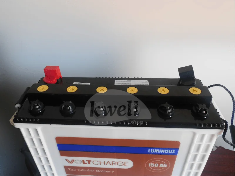Luminous 150AH 12V Volt Charge Tubular Battery VCTTEX150 Amp Hours: 150AH Voltage (DC): 12V A high-grade separator ensures less electrical resistance, high oxidation resistance, high porosity and high charge efficiency Tall tubular containers to store more electrolytes to ensure less frequent water topping HADI Spine casting for long service life Plates are designed for better charge acceptance Optimally porous ceramic level indicators suppress water loss Environment friendly and safer as it emits less fumes | #KweliGotYou| Order Luminous 150AH 12V Volt Charge Tubular Battery VCTTEX150; Low Maintenance, 1.8kWh , Made in India online and enjoy free delivery across Uganda > Long warranty > Lifetime After-sales Support