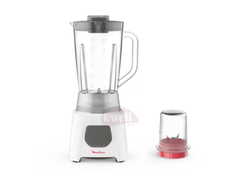 Moulinex Blendeo Juice Blender LM2B2127 1-speed +pulse 1x Grinder 1 x Blending jar Ice crushing 450 watt powerful motor 1.5L large blending jar Strong Zelkrom blades Air cooling system to prevent overheating Suction feet for maximum stability 1 year warranty