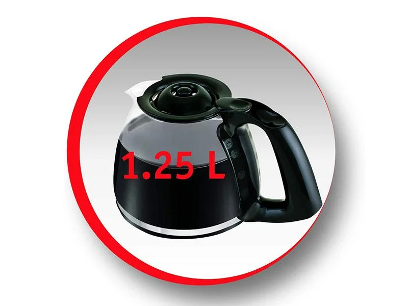 Moulinex Coffee Machine, Black Filter Coffee Maker Black & Stainless steel filter coffee maker Large 1.25 L capacity for up to 10-15 cups Removable swivel filter holder for easy access and cleaning Anti-drip system to serve coffee at any time Fully transparent water tank for easy dosing Illuminated On/Off switch Approximately 30-min keep-warm function with auto-off | #KweliGotYou| Order Moulinex Coffee Machine, Black Filter - FG370827 online and enjoy free delivery across Uganda > Long warranty > Lifetime After-sales Support