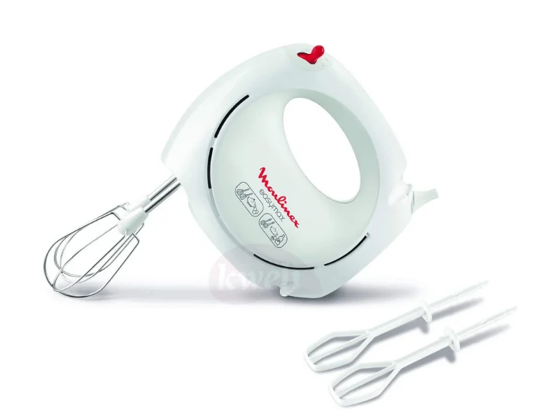 Easymax hand mixer always at hand 5 speed settings and a 200W motor for quick and easy beating egg whites and whipping cream 2 sets of beaters (plastic and stainless steel) for batters, cakes mixes, whipped egg whites and cream Ergonomic with all controls in easy reach Compact, always at hand when needed and easy to store in your kitchen | #KweliGotYou| Order Moulinex Easy Max Hand Mixer - HM250127; 200 Watts, White online and enjoy free delivery across Uganda > Long warranty > Lifetime After-sales Support