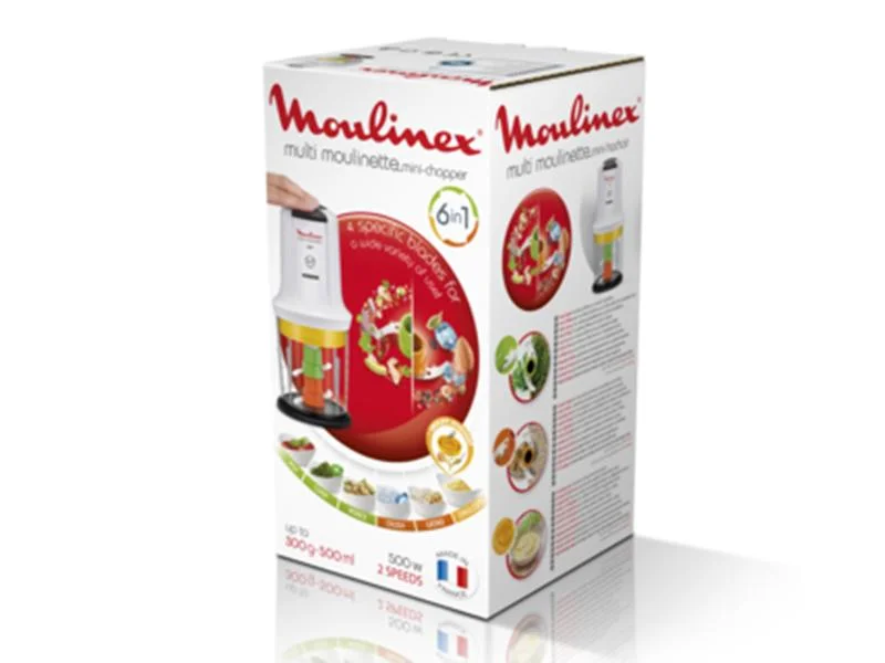 Moulinex Multi Moulinette Choppers AT723127; 6-in-1 Chopper 6 Functions in 1 mini chopper to mix all kinds of ingredients 2 sharp blades designed for soft ingredients 2 serrated blades designed for hard ingredients 500-watt powerful motor Large 500ml/300g capacity for all your daily needs 2-in-1 base non-slip base doubles as the bowl storage lid Plastic Bowl Easy to clean; all attachments are removable and dishwasher safe Easy to store 1-year FREE Moulinex warranty | #KweliGotYou| Order Moulinex Multi Moulinette Choppers AT723127; 6-in-1 Chopper, Mix Vegetables, Chop Herbs, Mince Meat, Crush Ice online and enjoy free delivery across Uganda > Long warranty > Lifetime After-sales Support