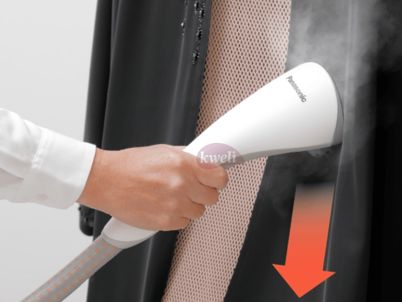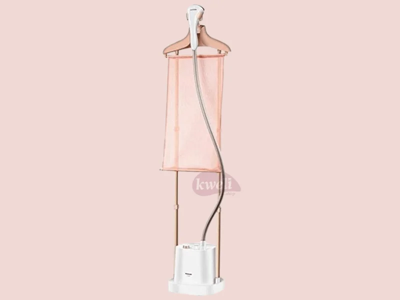 Panasonic Garment Steamer NIGWE080WTH 1,800W 4-level steam adjustment for various clothes 50 seconds quick start-up Unique thick 3D-shaped hanger, retaining the original shape of the garment Fabric board for the stability of ironing 2.0L detachable water tank Lightweight 170g steamer head Adjustable steam settings at hand A telescopic double pole for height adjustment enables easy storage Steam amount: max. 50g/min Accessories: Hanger with fabric board Colour: White | #KweliGotYou| Order Panasonic Garment Steamer NIGWE080WTH; 2140W, 2L Tank, Ironing Board online and enjoy free delivery across Uganda > Long warranty > Lifetime After-sales Support