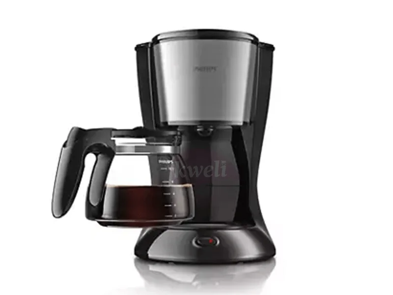 Philips Coffee maker HD7462 Auto shut-off after 30 min. for energy saving and safety Drip stop to pour a cup of coffee whenever you like LED power switch lights up when the coffee maker is switched Aroma twister circulates the coffee for an optimal taste 1.2 Liter capacity for 2 - 15 cups Dishwasher-safe parts for easy cleaning Water level indication for easy filling Power consumption brewing - 1000 watts Voltage 220 - 240 V | #KweliGotYou| Order Philips Coffee maker HD7462/20; 1.2 Liter, Glass Jug, Aroma twister, Drip Stop, 1000 watts online and enjoy free delivery across Uganda > Long warranty > Lifetime After-sales Support