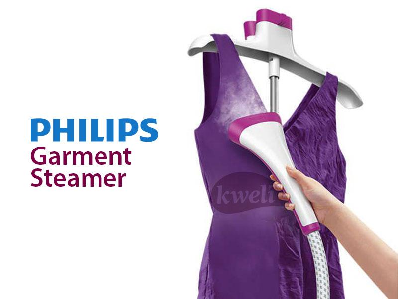 Philips garment steamer, (Philips EasyTouch Plus garment steamer) is designed for easy crease removal every day. With a wide range of essential steaming solutions, it is a perfect appliance for quick touch-ups, delicate and difficult to iron clothes. Cover more in one stroke with 25% larger* steam plate 3 steam levels for different kinds of fabric Adjustable pole for various height settings Special garment hanger Powerful continuous steam for efficient wrinkle removal Large detachable water tank for easy refill anytime Safe to use on all garments Easy de-calc function for longer product lifetime Glove for extra protection during steaming 1600W, 32g/min 3 steam settings 1.6L Detachable tank 2 year Philips Guarantee | #KweliGotYou| Order Philips Garment Steamer GC514, EasyTouch Plus 1600-Watt Garment Steamer online and enjoy free delivery across Uganda > Long warranty > Lifetime After-sales Support