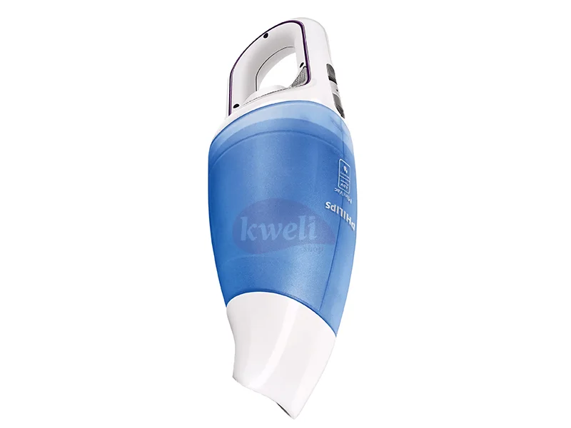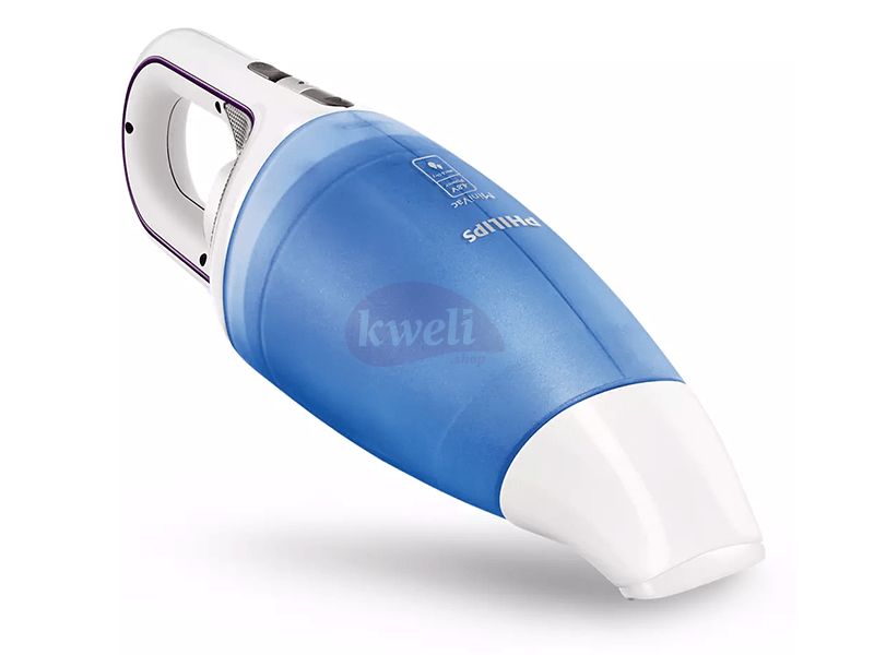 Philips MiniVac Handheld vacuum cleaner FC6142 4.8V battery Bagless Cyclonic Crevice, brush tool, squeegee Wet & dry Slim charging base (for wall or table) 2-stage bagless cyclonic airflow for optimal filtration Aerodynamic nozzle design for a better dust pick-up Looped handle ensure optimum grip One-step click-off nozzle for easy emptying Powerful 3.6 V NiMH batteries | #KweliGotYou| Order Philips MiniVac Handheld vacuum cleaner FC6142; 56 watts, 1.4kg, Wet and dry system online and enjoy free delivery across Uganda > Long warranty > Lifetime After-sales Support