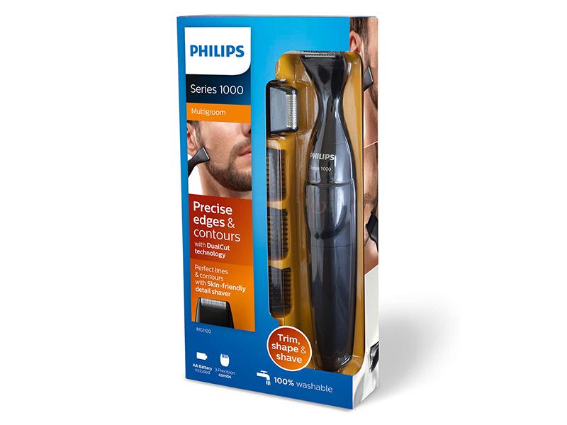 Description The Philips MULTIGROOM Series 1000 gives power & precision to trim, shape & shave facial hair. Trim & shape your beard evenly with the advanced DualCut trimmer & the combs. Define precise lines, edges & contours with the detail shaver. 3 precision combs Detail trimmer for perfect facial details The 21mm precision trimmer helps you trim evenly & shape your facial style (stubble, goatee, sideburns, neckline or mustache) with high control and visibility. Sharper blades* for perfect edging with DualCut technology Advanced DualCut Technology combines a double-sharpened cutting element with low-friction engineering. Detail shaver for perfect lines and contours The skin-frienly 21mm detail foil shaver is designed to fit into small spaces with more precision than a blade, for a clean shave even in hard to reach areas. 3 precision combs for an even trim of facial hair Trim and maintain the uniform length of your stubble, beard, goatee, sideburns and mustache with the 1mm, 3mm, and 5mm click-on precision combs. Fully washable The trimmer and the combs are easy to clean under the tap. Brush for easy cleaning of the precision trimmer The brush keeps the blade clean after use. Easy hold and control, even when wet The soft-touch rubber grip gives you the best hold, even when wet, for better control when operating your trimmer. AA battery included AA battery-operated, your trimmer is ready to use straight away. 2-year guarantee All of our grooming products are built to last. The trimmer comes with a 2-year guarantee. The blades never need to be oiled No need to oil ever, for easy maintenance.