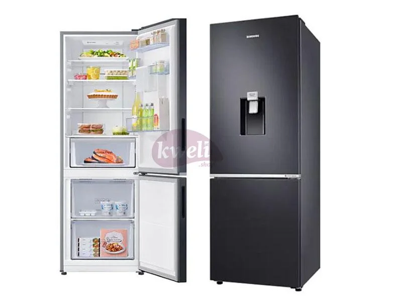 Samsung 370-liter Refrigerator with Dispenser Gross capacity: 370 litres Net Capacity: 290 litres Frost-free Digital inverter compressor Interior LED lighting in fridge compartment Separate freezer temperature control Power cool function Deodorizing filter Tempered glass shelves LED lighting | #KweliGotYou| Order Samsung 370-liter Refrigerator with Dispenser RB30 N4160B1 - Double Door Fridge, Bottom Mount Freezer, Frost Free online and enjoy free delivery across Uganda > Long warranty > Lifetime After-sales Support