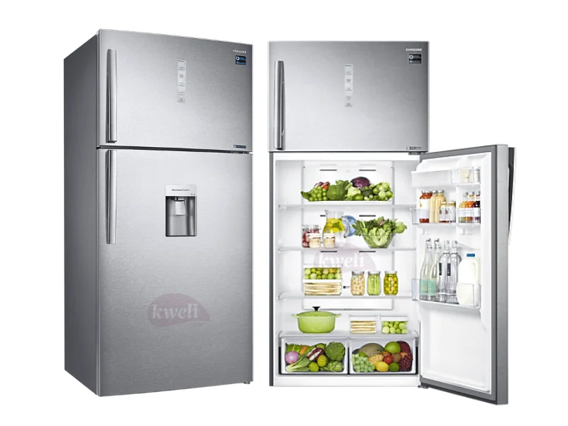 Samsung 618-litre Refrigerator RT62K7110SL Double Door Refrigerator Water Dispenser Top Mount Freezer Frost-free freezer Twin Cooling Plus Multi-Flow Tempered Glass Shelves 4 Shelves Number of Vegetable & Fruit Drawers (half) 4 Door Pockets Egg Container (Egg Tray) Interior LED Light: Top LED Big Guards: Yes Ice Maker: Twist Digital inverter compressor Refrigerant: R-600a Energy Efficiency Class: A+ 1 year Samsung warranty | #KweliGotYou| Order Samsung 618-litre Refrigerator RT62K7110SL; Double Door, Top Freezer, Twin Cooling, Inverter, Frost-free online and enjoy free delivery across Uganda > Long warranty > Lifetime After-sales Support